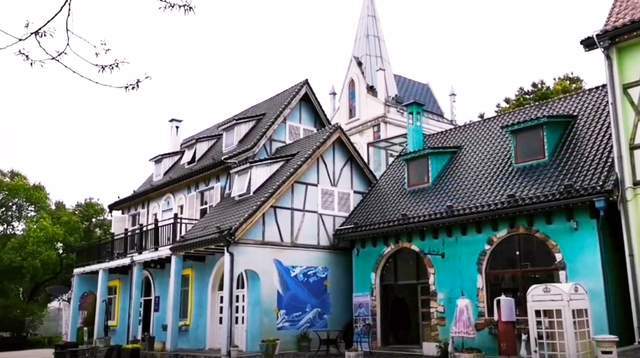 这边有一家工艺品商铺,连在一起,共用一栋洋房。其外墙装饰很清淡,浅色系的瓷砖,深色系的屋顶,圆锥形的主楼屋檐,看着就能定位出教堂元素。有意思的是,其屋檐下有一座网红桥,上面订了抖音打卡的位置,kt板周边贴满了问候语。随着灯光和音乐的节奏,到傍晚时分,整个场景更有沉浸感。夜景下,街区有点神秘,食物的香味浓郁,在此坐一会儿,似乎也能好奇坐一坐,点上一盘西餐,也不是那么难吃(喵星人日志原创随笔文字,部分插图未及时标注出处,如涉及侵权,请联络删除)。