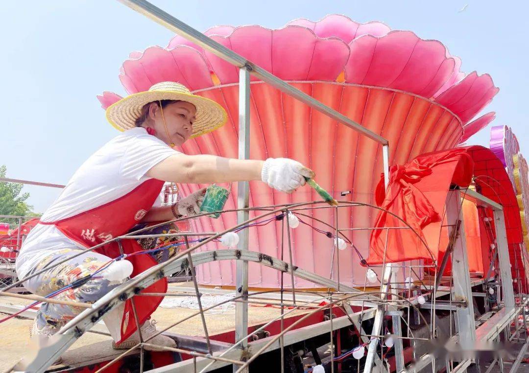 据现场负责人介绍,18辆花车的主体框架将于4月23日全部完成,一部分花车正在进行绸缎裱糊、灯光调试工作,其中代表邓州市的花车已经完成70%的工作。“本次各县市区的花车造型可谓各有特色,每辆花车造型都展示了当地的特色产业,以及名胜古迹。”该负责人告诉记者,代表邓州市的花车造型,就有邓州当地著名景观——平成门,市城乡一体化示范区的花车是月季仙子造型,市职教园区的花车则有着浓浓的教育特色。
