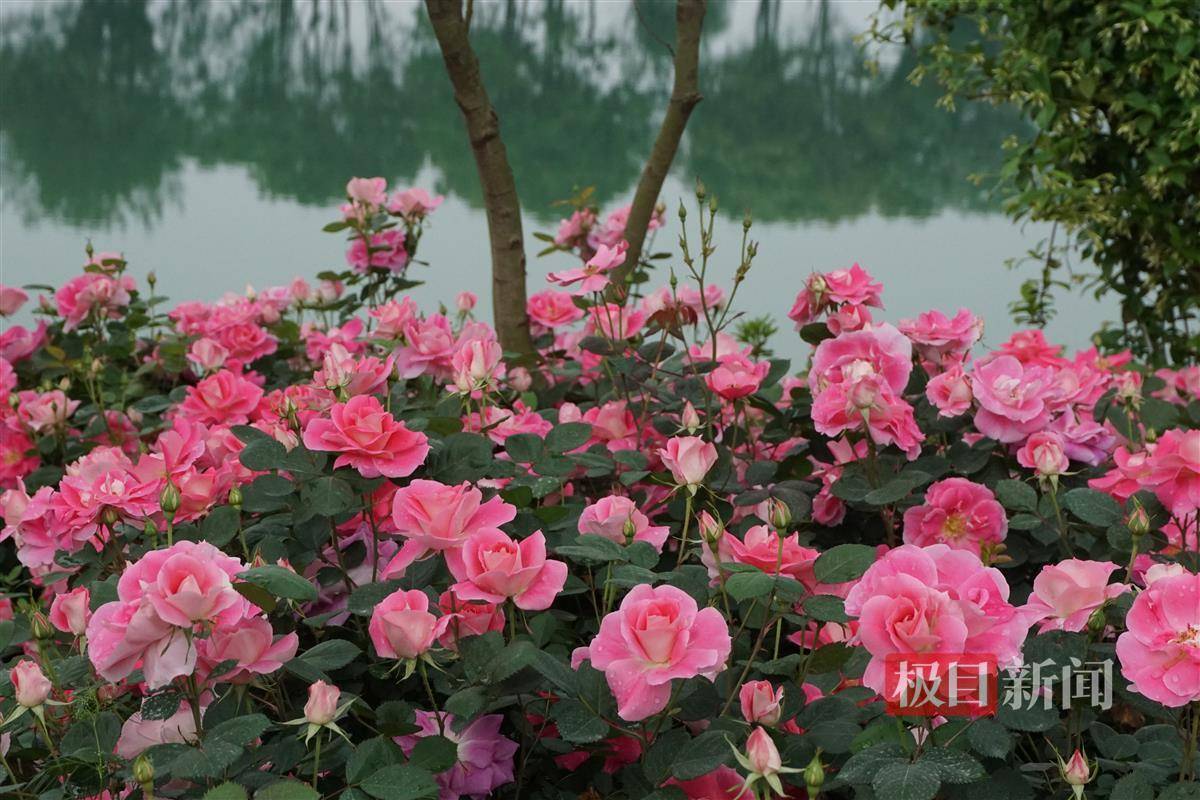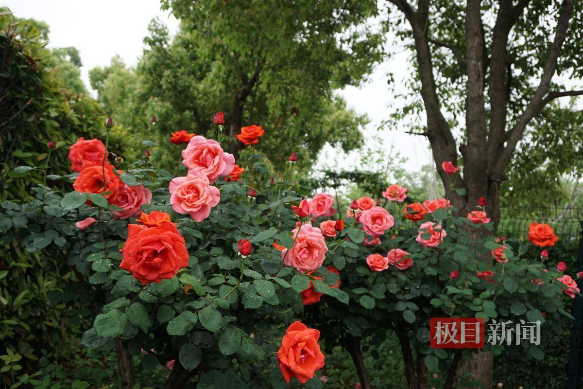 4月19日早晨,极目新闻记者探访了武汉市最大的月季专类花园。月季花园位于武汉市东西湖区金银湖东侧,与环湖西路相邻。进入园区,放眼望去,鲜艳多姿的月季肆意盛放,花型饱满,光彩夺目,走近一看,月季花瓣上还残留着朝露,更显得月季花娇艳欲滴,而月季花海位于金银湖畔,微风挟裹着水汽带着花香拂面而来,漫步其中让人感到心旷神怡。整个园区分为欧洲月季、阳光草坪、花漾广场、花环月季等区域,每个区域都可以找寻到独特的月季花景观,粉紫、橙色、胭脂红……稍加留意,可发现不少别致颜色的月季花卉,每探寻一处收获一处别致的风景。不少市民前来此处打卡游玩、拍照、摄影。