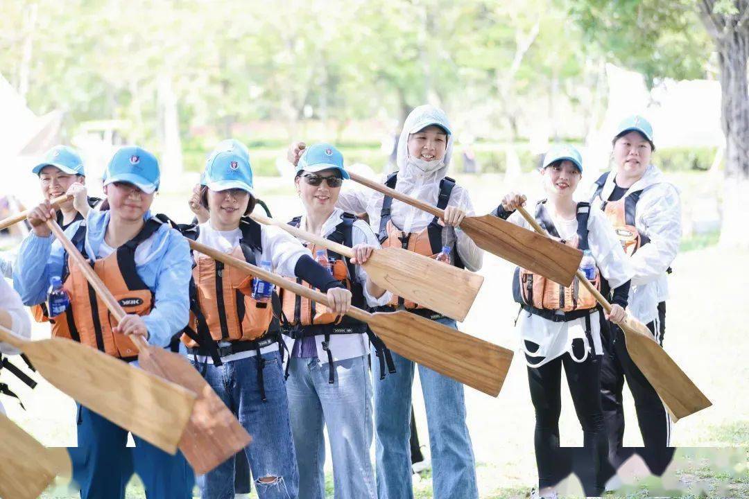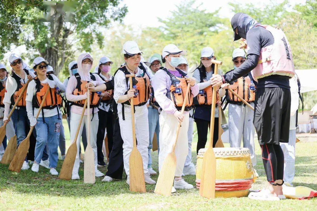 在华阳湖轻奢帐篷营地,伴着轻快的户外音乐,“生活无忧.龙舟露营寻欢”户外团建活动正式开展。这次的活动分露营+龙舟的两个部分进行,老师们在教练的带领下,练习着简单的划桨动作。