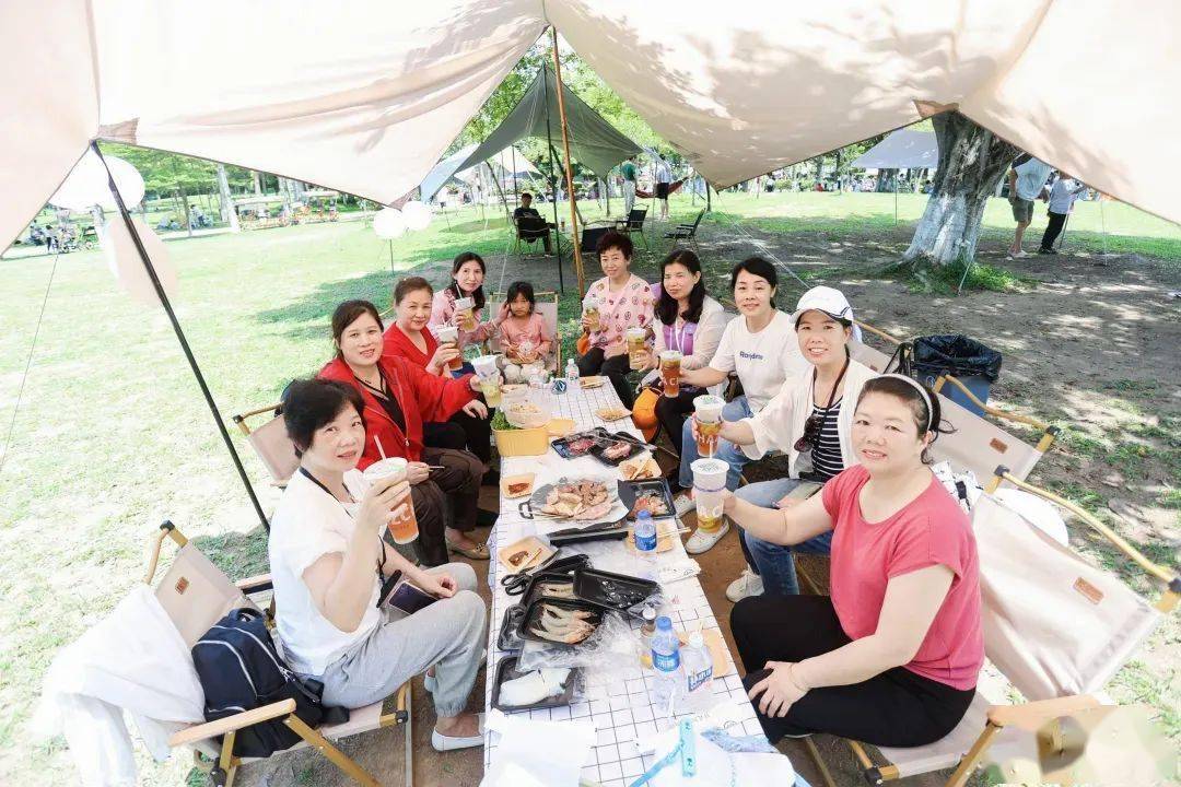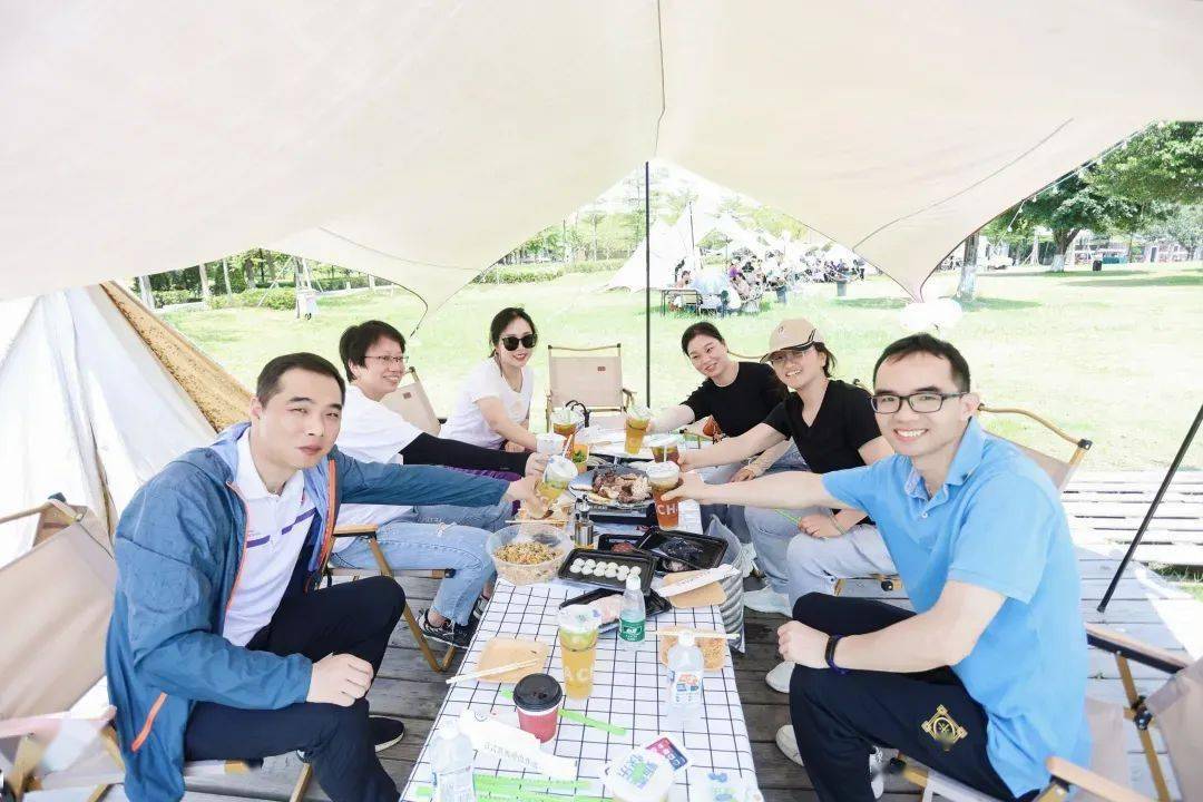 休闲露营的环节,老师们围坐在一起,躺在露营椅上,促膝而谈,露营烤肉加上下午茶的搭配,好好享受美食带来的快乐。在华阳湖的绿芬芳芳里,在帐篷营地斑斓的树影下,全身心回归自然,既舒服又惬意,这也是越来越多人喜欢户外露营的原因。