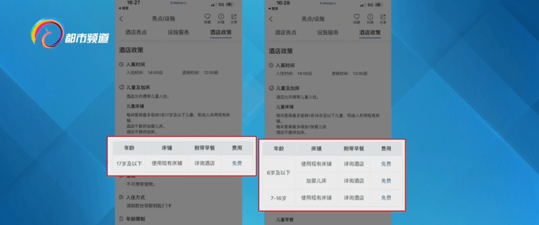 以大理某售价为2000多元一天的高档酒店标间为例,酒店在入住说明中注明:欢迎儿童入住,17岁及以下儿童,使用现有床铺免费,但超过入住人数时,可能涉及额外费用。另外一家售价为368元的酒店则标明:超过入住人数时,儿童使用现有床铺可能涉及额外费用,具体详询。