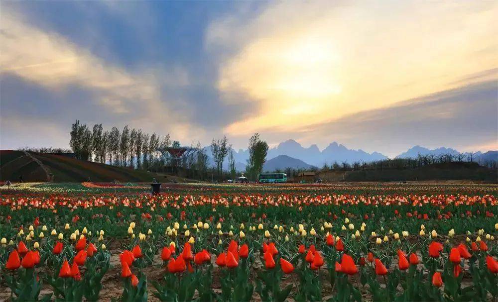 郁金香令人惊艳、美不胜收。漫步花海,感受郁金香带来的浪漫风情,各种色彩的郁金香给人以美的享受。