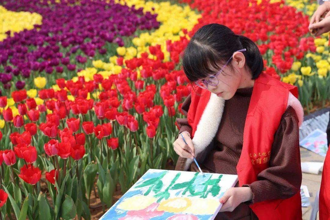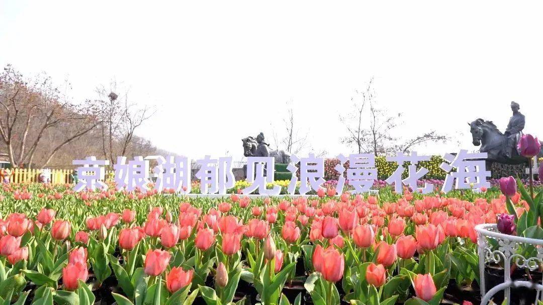 在衡水市故城县龙湖公园,一阵花香伴着春风迎面扑来,公园里15万株郁金香俏丽争艳,蔓延成一片五彩斑斓的花海。