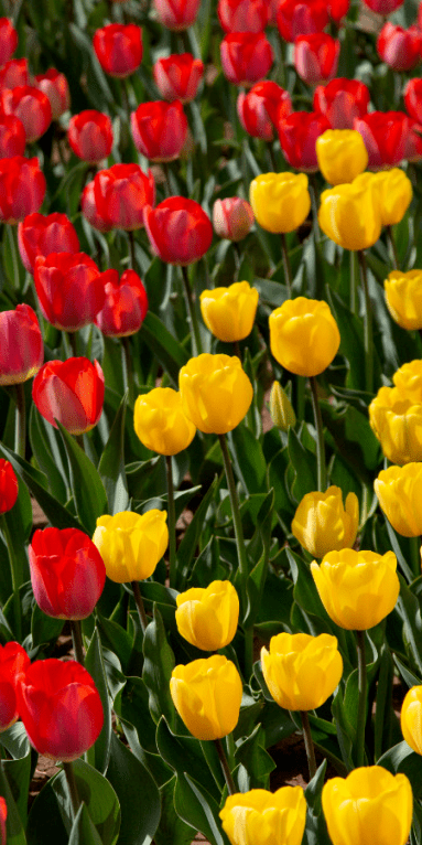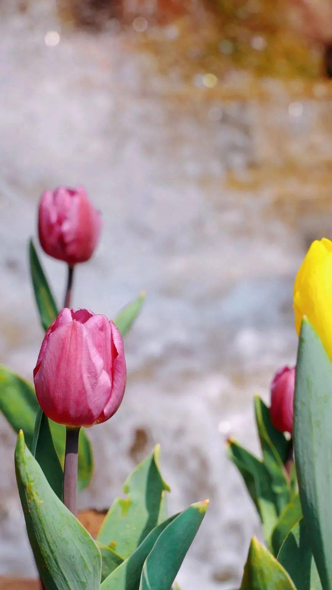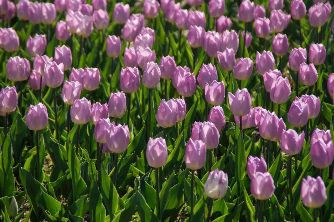 这些妖娆的仙子们如美人出浴,伸伸懒腰,微风和阳光轻拂花颊,仿佛为它们梳妆打扮。在阳光的照射下,各种颜色的郁金香绚烂多彩、娇艳妩媚,值得你停下脚步,细细欣赏。