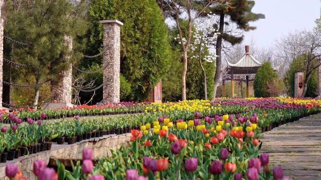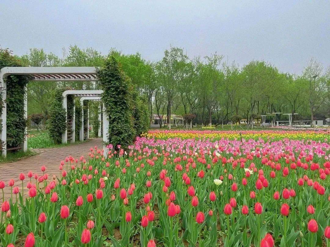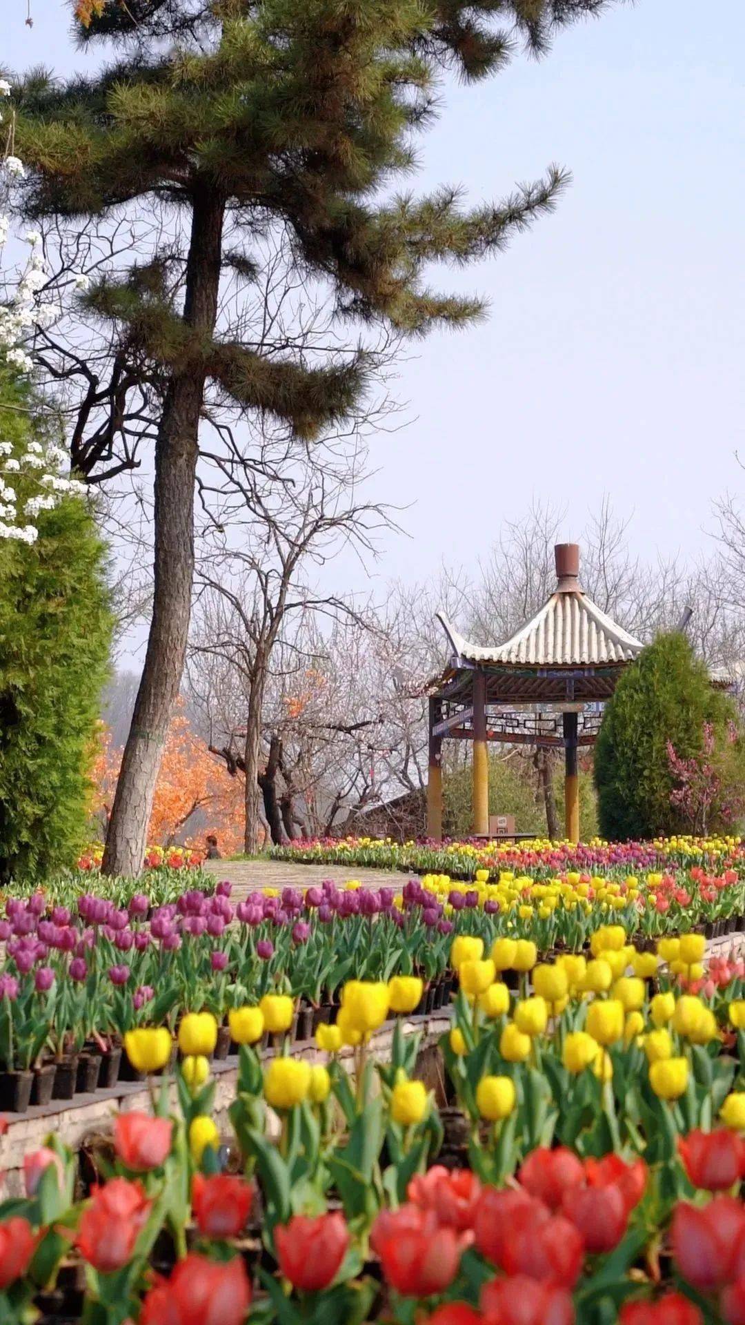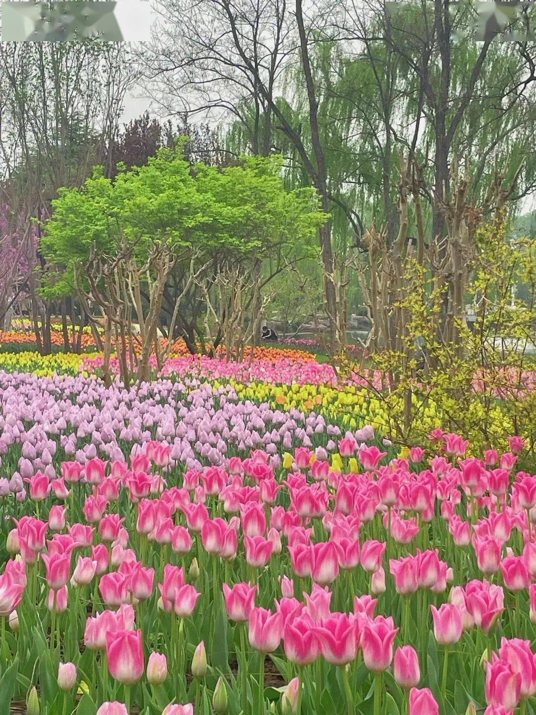 石家庄植物园内各色郁金香相继开放,一片片花海像是打翻的调色盘,满园皆是春色,满园皆是绚烂。
