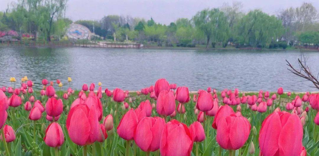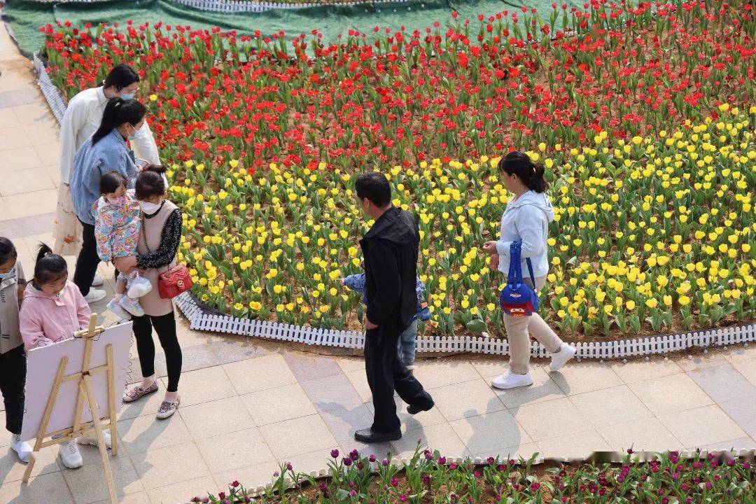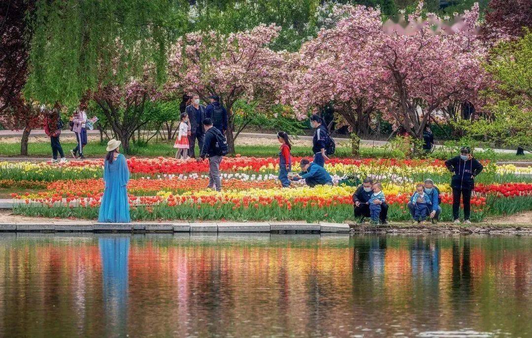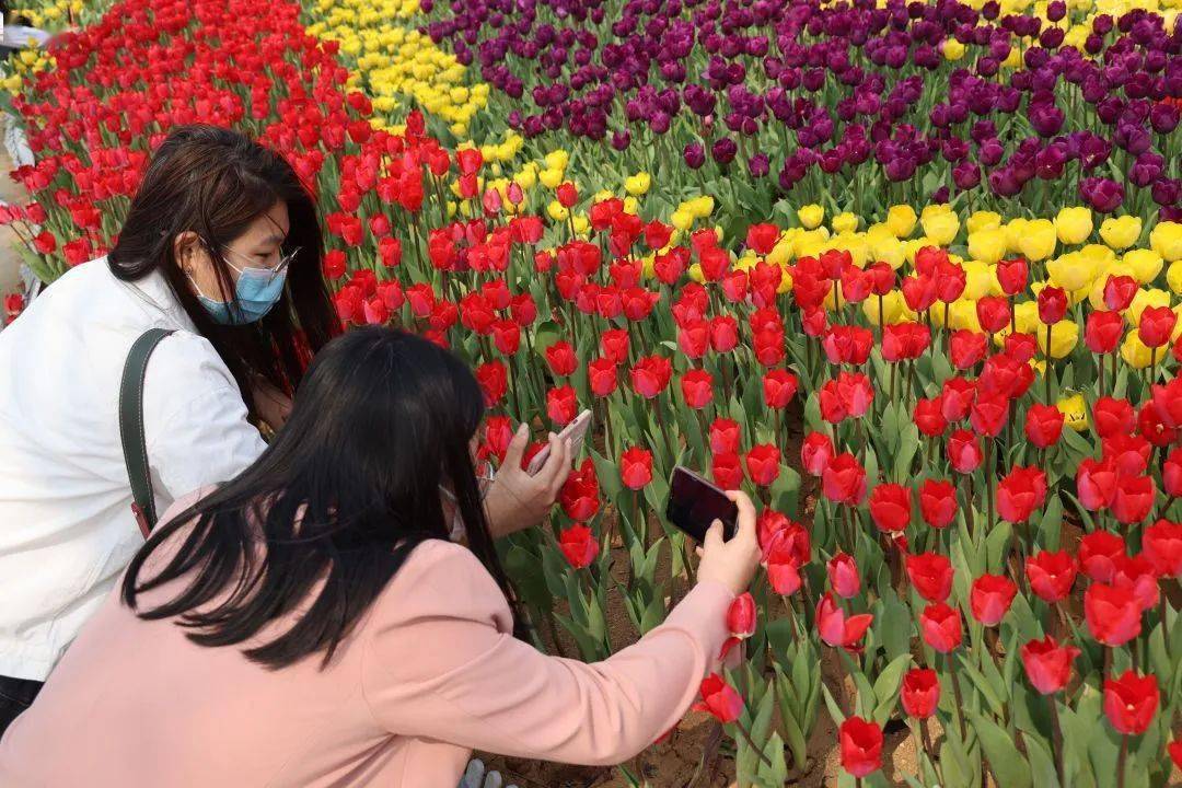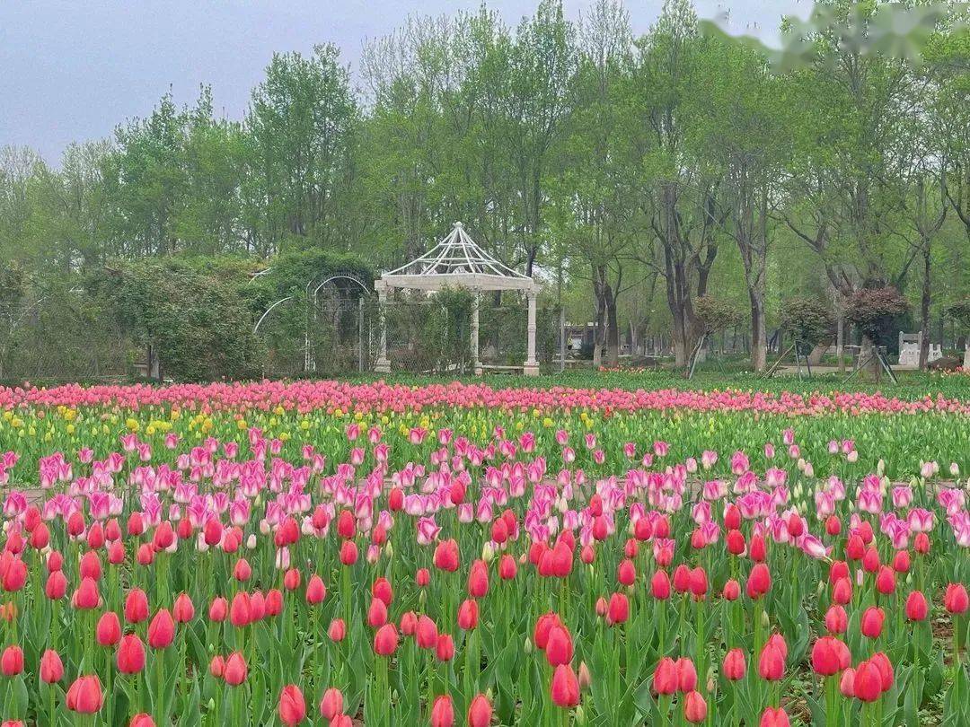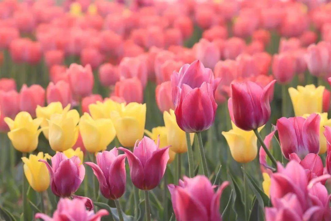 石家庄植物园内各色郁金香相继开放,一片片花海像是打翻的调色盘,满园皆是春色,满园皆是绚烂。