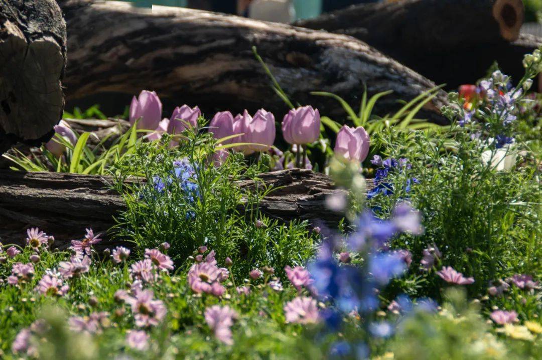行走在花间的蜿蜒小道上,欣赏颜色、品种各异的郁金香。自带“春光”滤镜,每一处景致,都温柔缱绻。