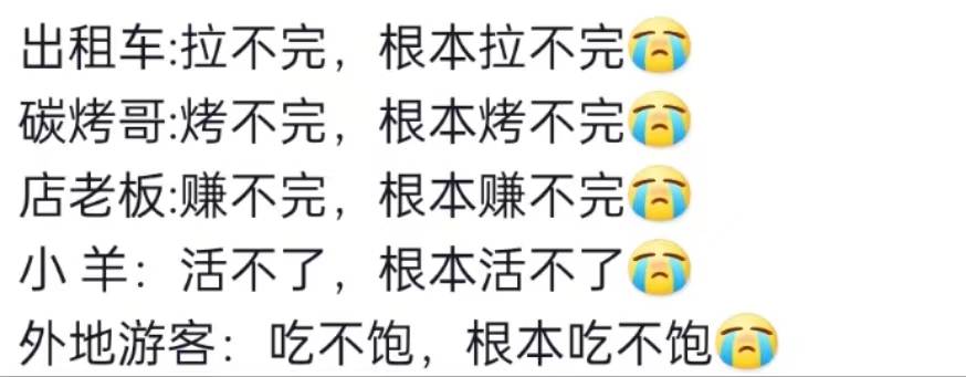原本有家烧烤店贴出告示要放假休息三天的烧烤店,还上了热搜,结果只休息了一天就上工了,老板接受采访说,“我这不是寻思嘛,这外地朋友那么多,是吧,那么远来了也吃不上肉,我累点也不能让他跑空。”