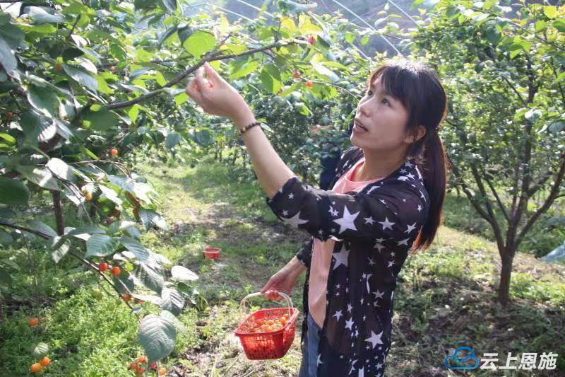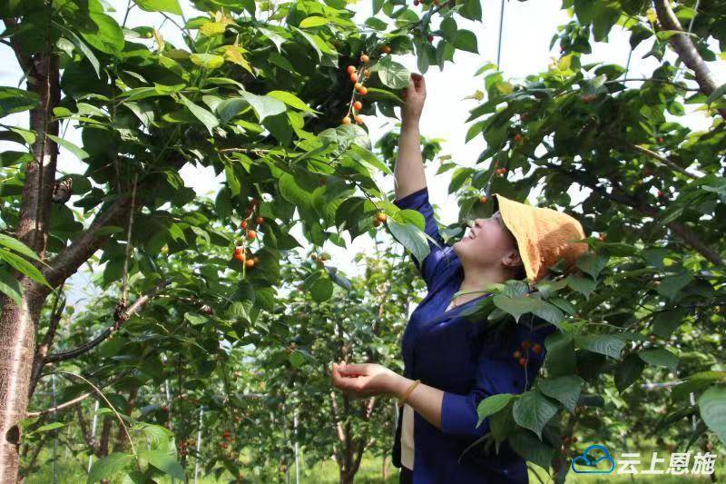 云上恩施报道(通讯员唐旻 邱军 杨锡忠)4月20日,游客在长梁镇旋龙村建始跃康水果种植专业合作社果园里采摘樱桃。