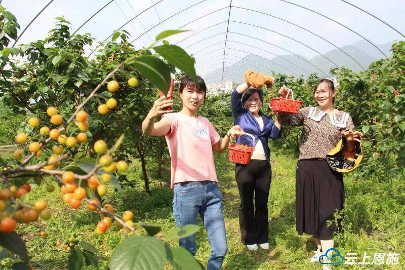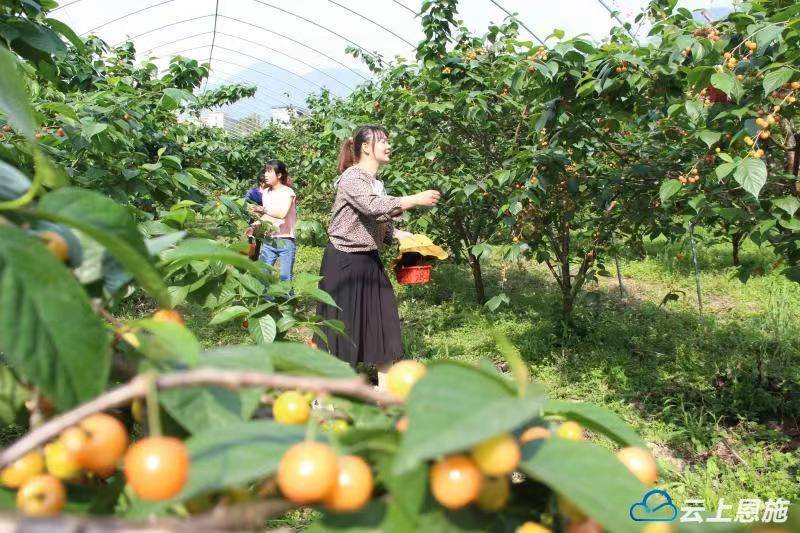 原标题:建始长梁:四月樱桃红,游客采摘乐