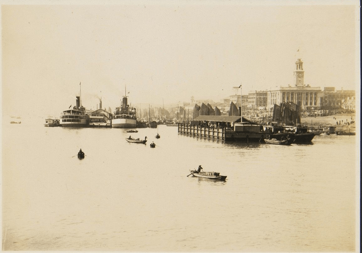 扬子江口的长江江面,船只在江上穿梭航行。长江从南京以下至入海口的江段被称为扬子江。扬子江流经江苏省和上海市。从照片上看,扬子江上烟波浩渺,帆船点点,风光十分优美。