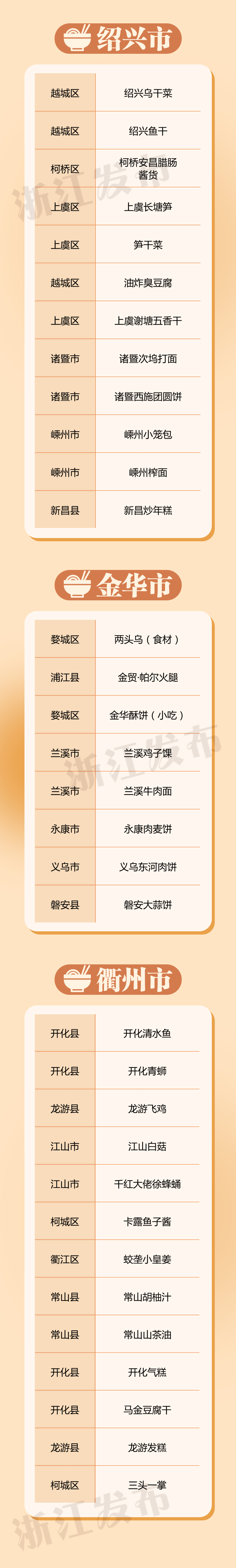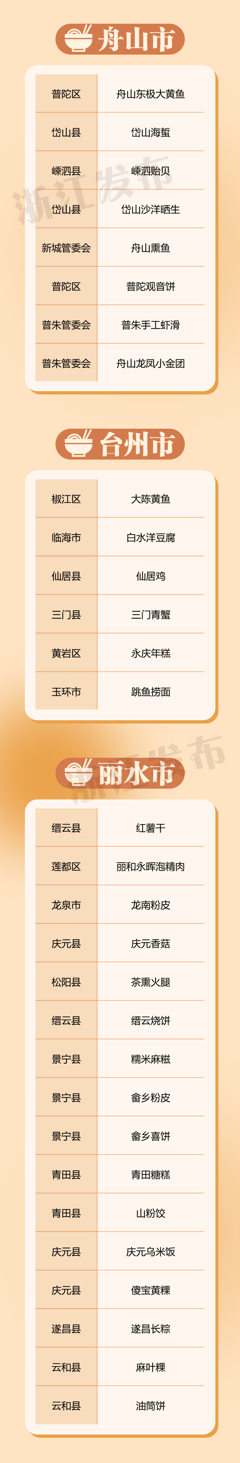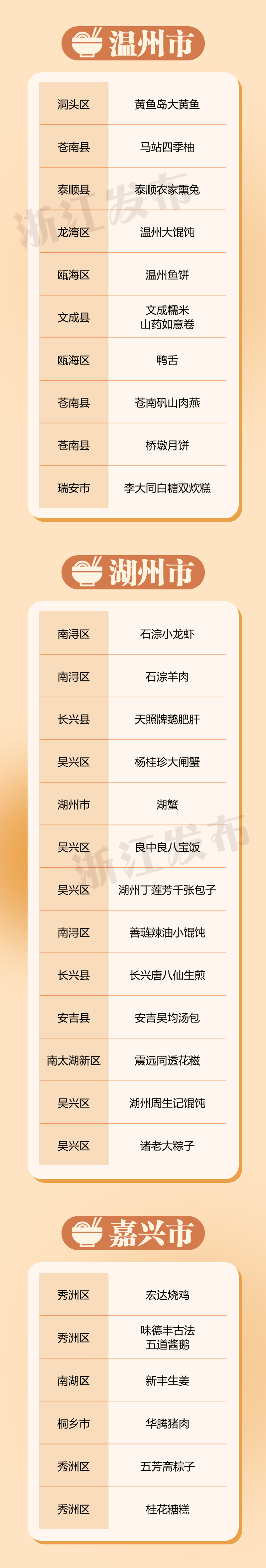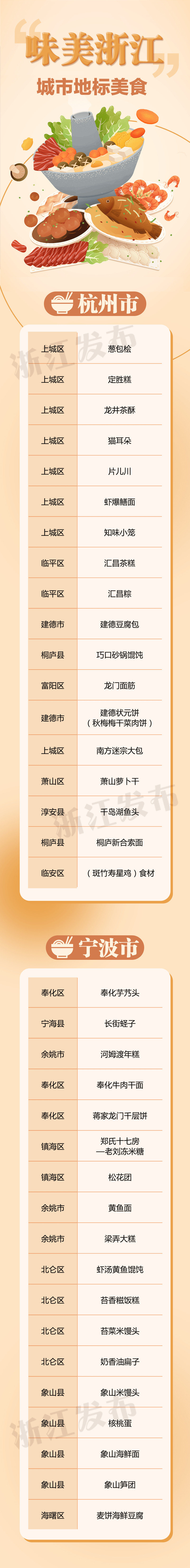 启动仪式现场发布了 “味美浙江”城市地标美食榜单,看看有没有你记忆中最有家乡味的那道美食↓↓