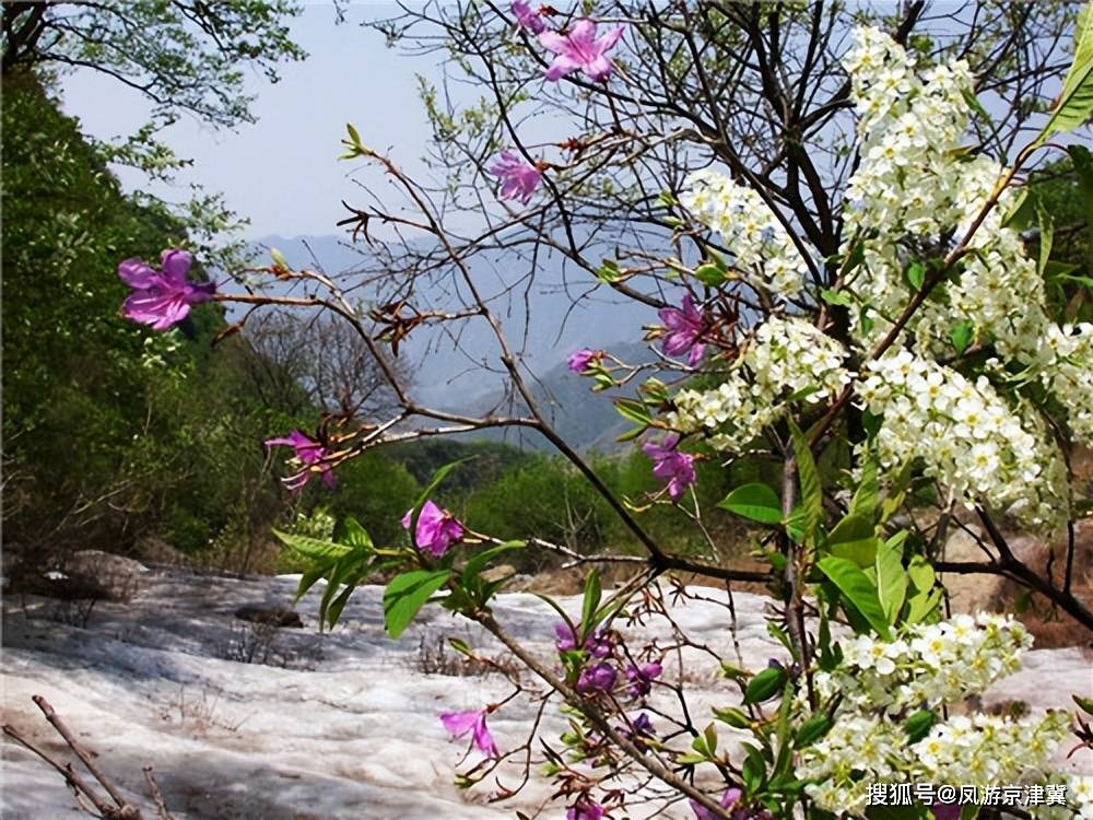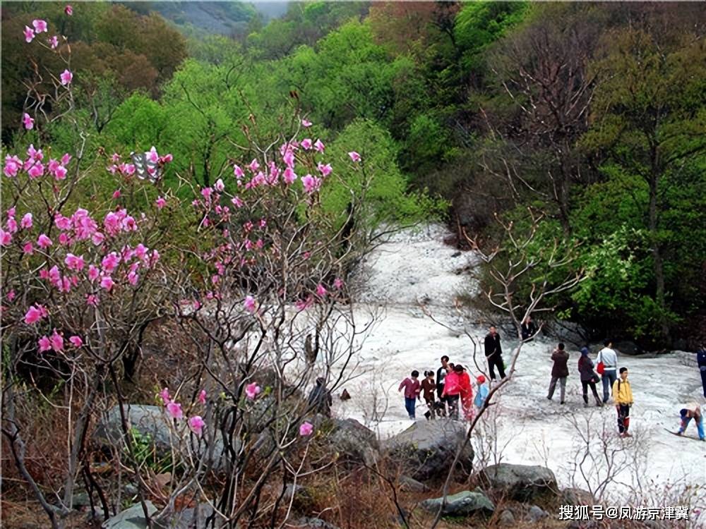 “四月看杜鹃,五月闻丁香。”百草畔由于近两千米的海拔高度,较大温差,在山上的冰雪还未完全消融时,便迎来杜鹃花的绽放。冰雪与杜鹃花互相映衬,冰川杜鹃成为野三坡百草畔独特风景。“冰川侧畔听风雨,头顶雪花赏杜鹃。”在温柔的春天里欣赏此等景色,别有一番风味。