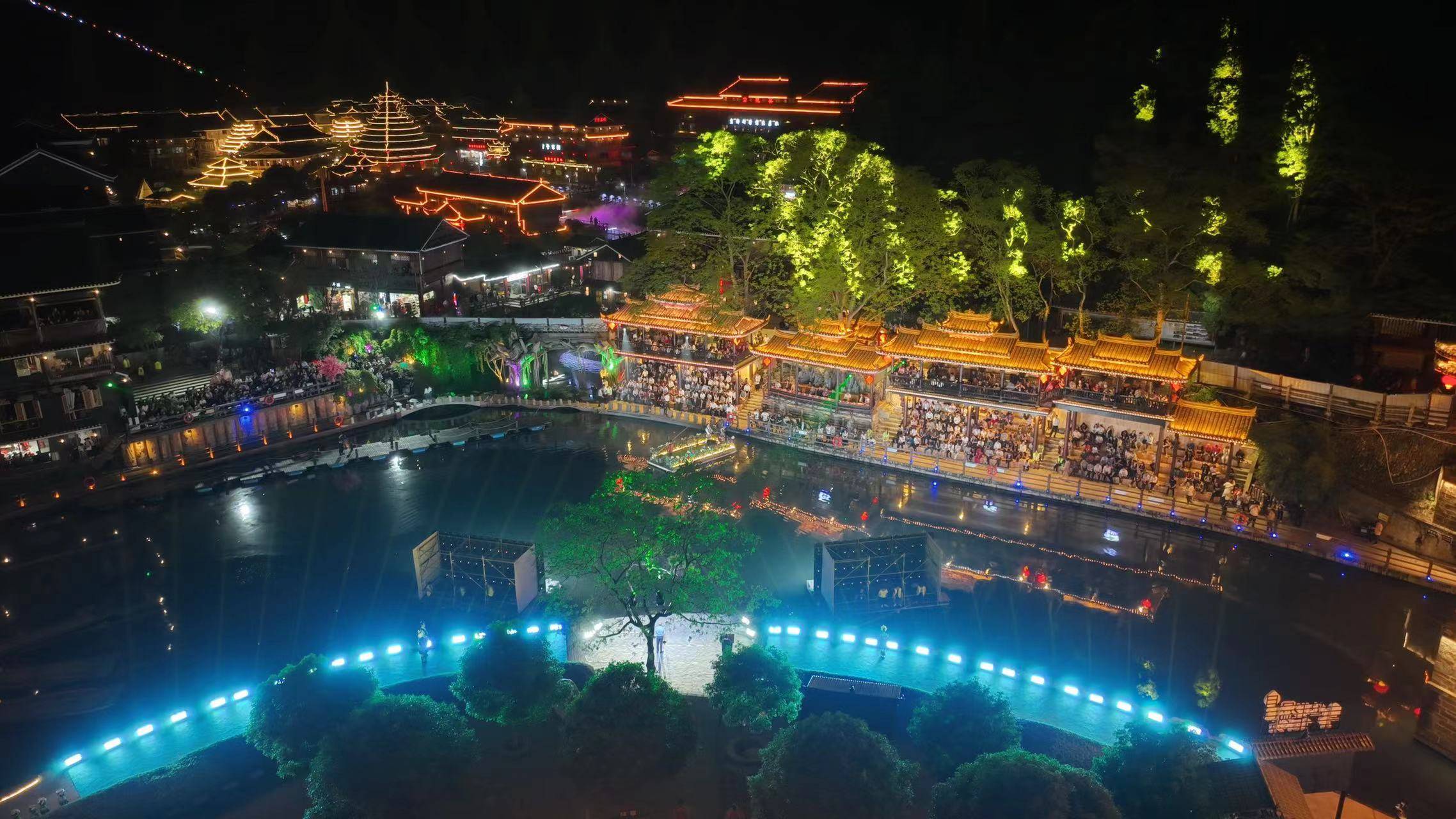 开幕式上,原生态大型侗寨山水实景演出《戊梁恋歌》以原生态侗寨、风雨桥、坪坦河等作为舞台背景,给观众带来一场视觉非遗盛宴,共同“侗”听村晚。
