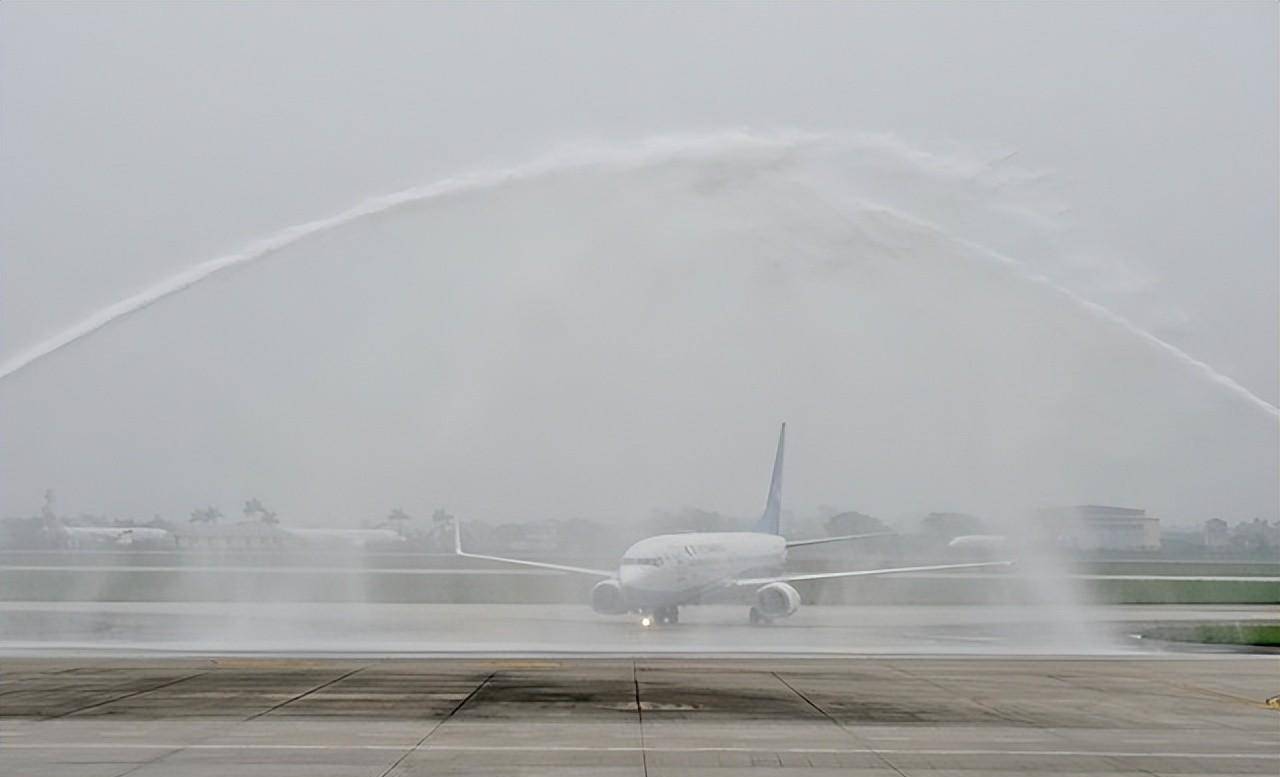 为庆祝这一盛事,内排机场安排了水炮欢迎仪式,这是对新航线开通的隆重欢迎仪式。