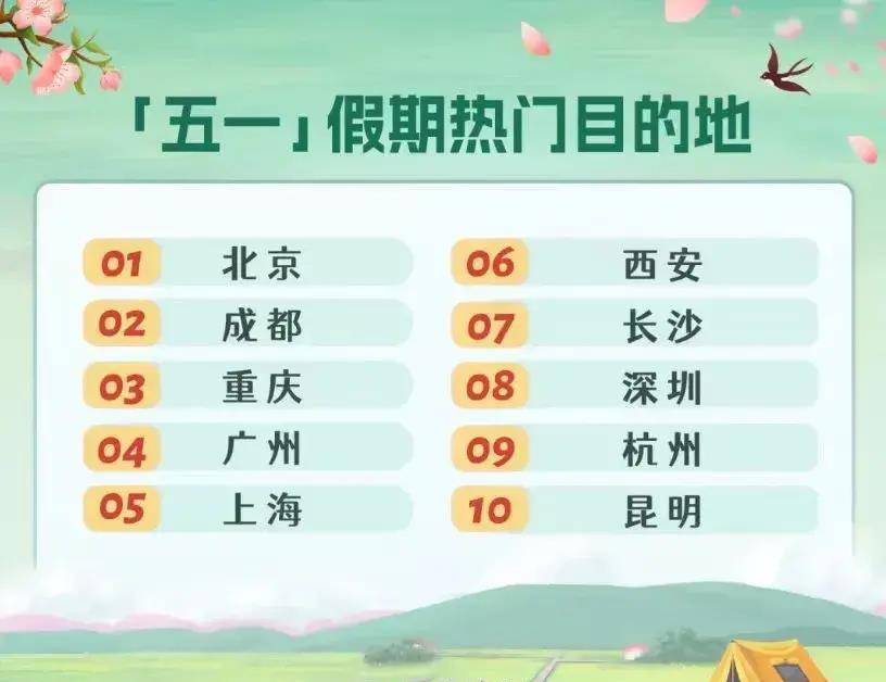 五一国际劳动节,是庆祝全世界无产阶级和劳动人民团结战斗的节日。自从五一劳动节假期增至五天,旅游出行又成了五一劳动节的另一个标签。五一劳动节临近,各大旅游网站公布了热门出游目的地,成都、重庆、广州和深圳等城市强势入围。这些城市因其独特的文化魅力、美食和旅游景点而备受游客青睐。