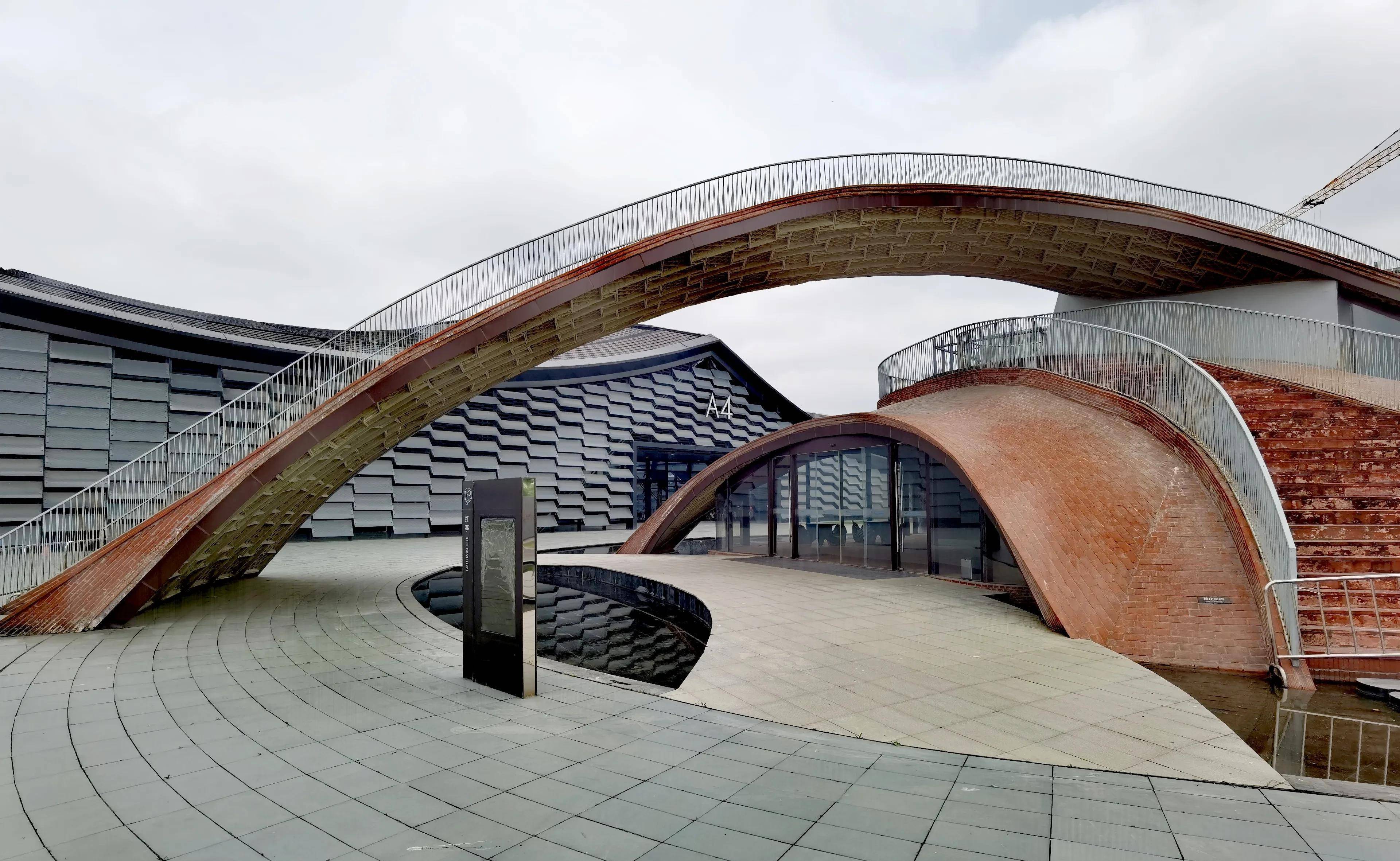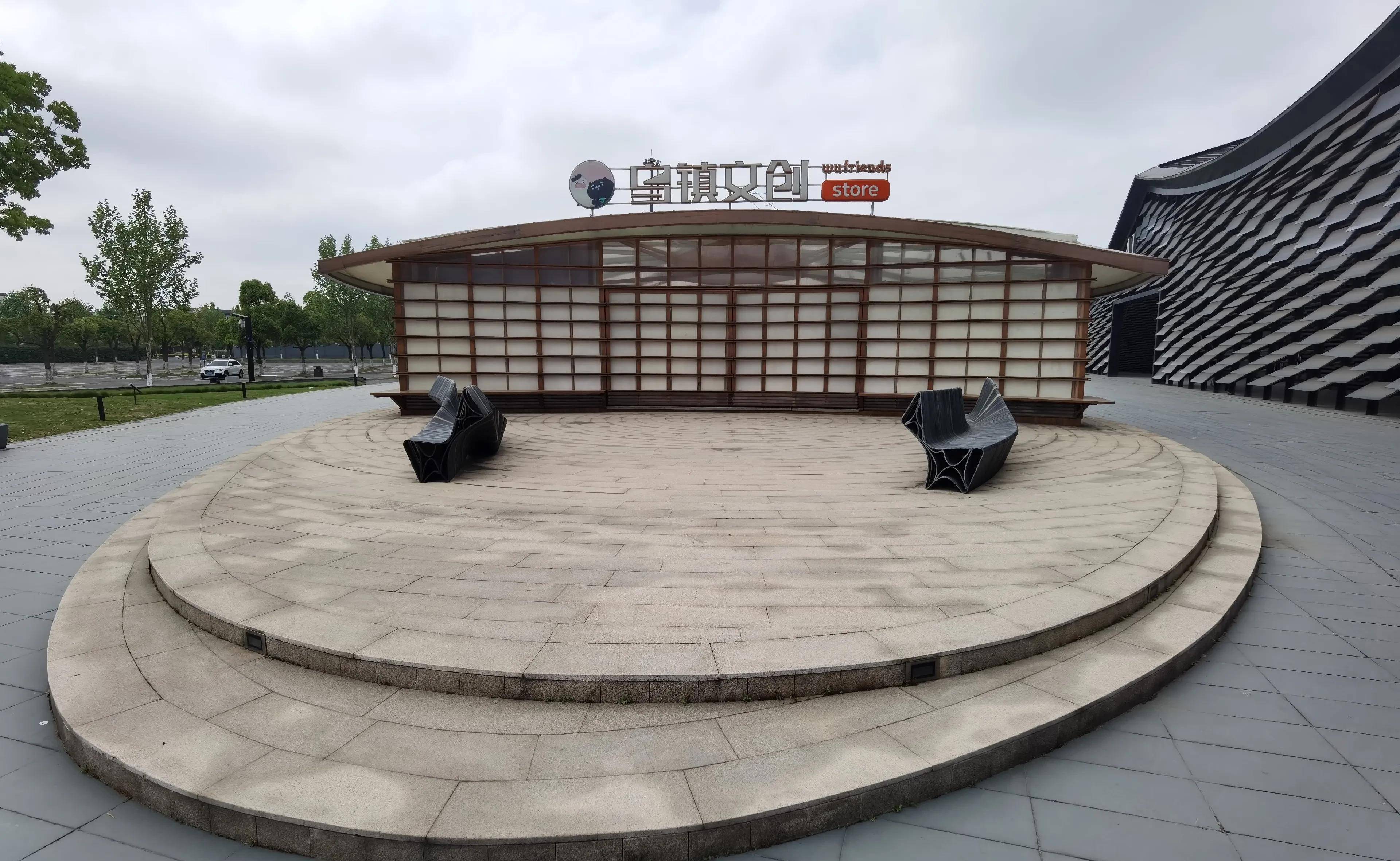 离开乌镇之前,收拾好行李,驱车来到西栅景区外侧的乌镇互联网国际会展中心。不知道什么原因,网上说的对游客开放变成了闭馆。绕了一大圈,找到入口 ,在外面随便拍些照片,权作到此一游。
