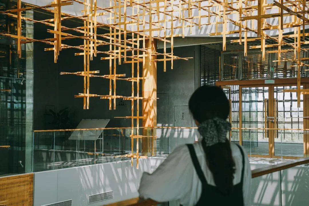 雁之羽打造了一间看得见风景的展馆,其中竹钢结构便是设计师的一大巧思。