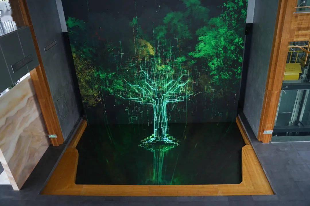 搭配馆内的竹和数字场景,将自然、文化、艺术和科技完美融合起来。