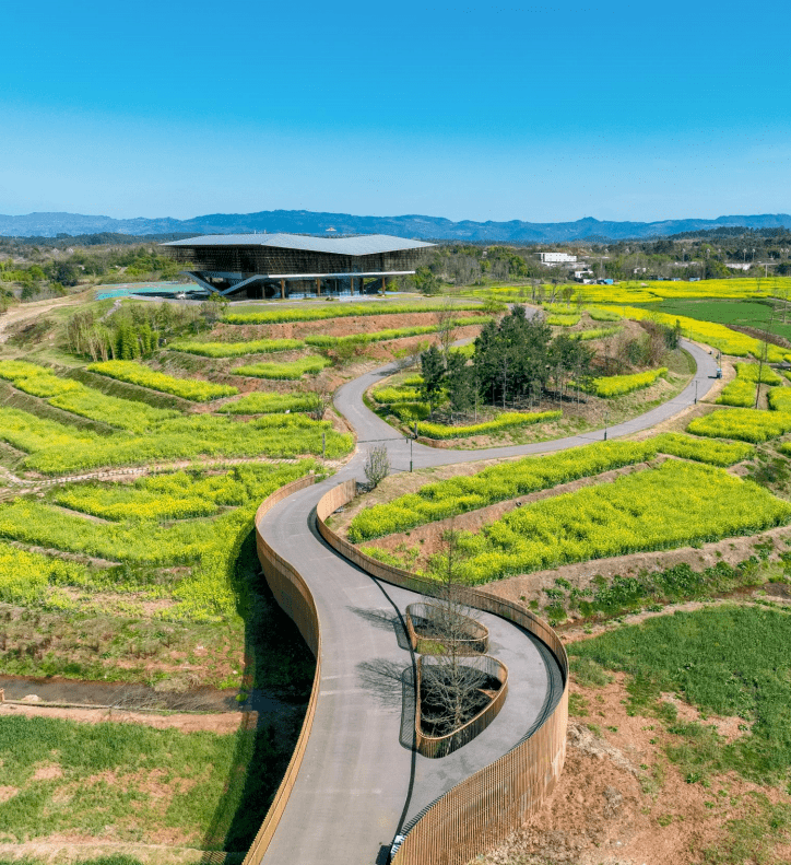这是一座“看得见风景的展馆”。哪怕身在馆内,你依然可以360°环视周围的山水田园。