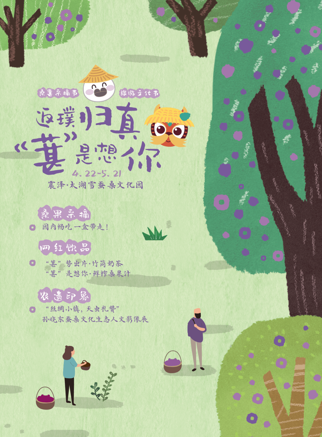 又是一年桑葚采摘时,4月22日至5月21日来震泽蚕桑文化园邂逅舌尖上的春光。