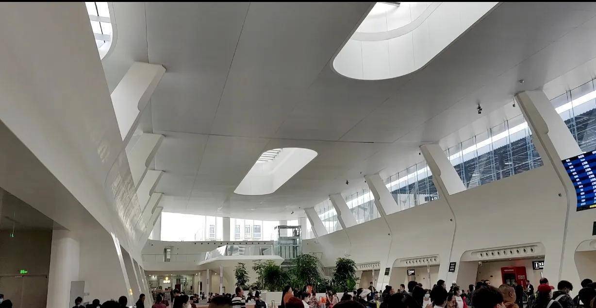 火车站在地下B1层,出入口在老火车站博物馆的正前方左右两侧,以圆形凹坑形式,设计宽大的阶梯和无障碍电梯直达,B1层是火车站和商场融为一体,让人感觉方便又高大上。售票厅在入口的右侧,购票的人不算多,可能大多数人和我一样是网上购票吧,售票厅斜对面就是公厕,入厕更加方便,广播一直提示禁止吸烟,环境干净优雅。