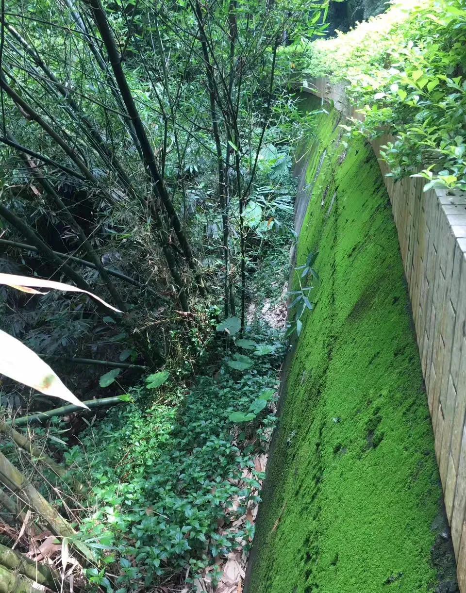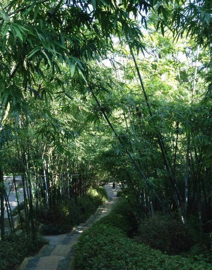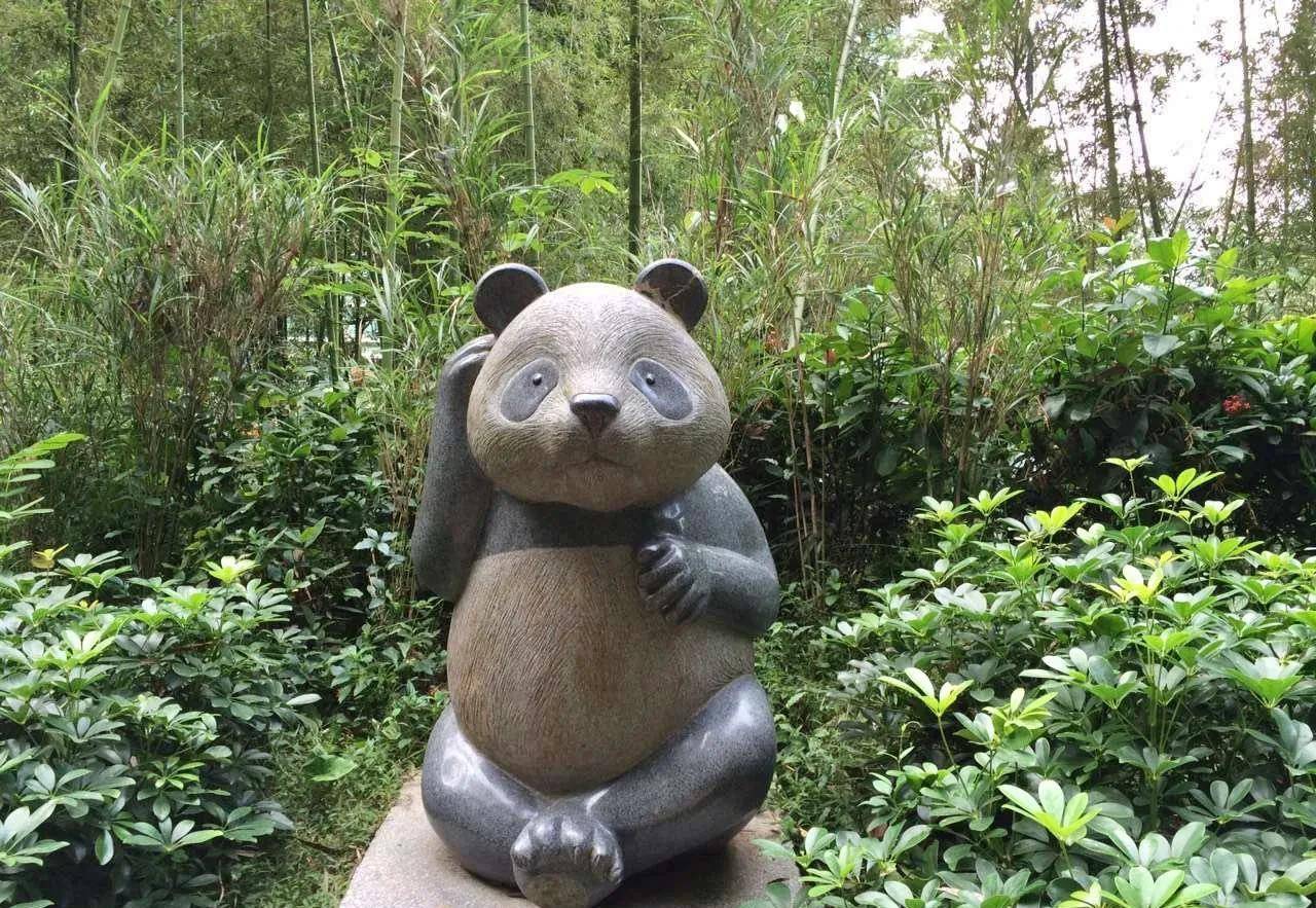 翠竹公园内设施都以“竹”为主题,种了多种竹类植物,以及各种“竹”元素:围栏上的竹子雕花、步道旁的熊猫石像,登山道路中途也有翠绿的小竹亭。