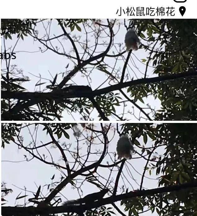 咬异木棉花的小松鼠