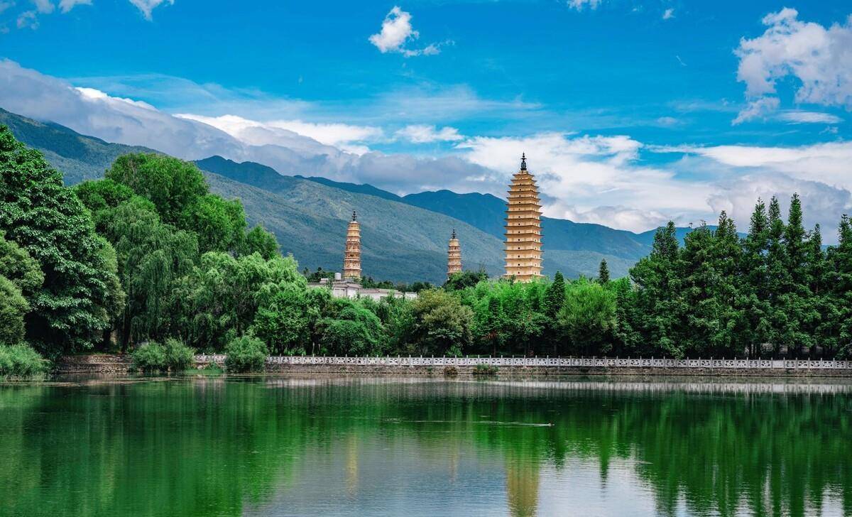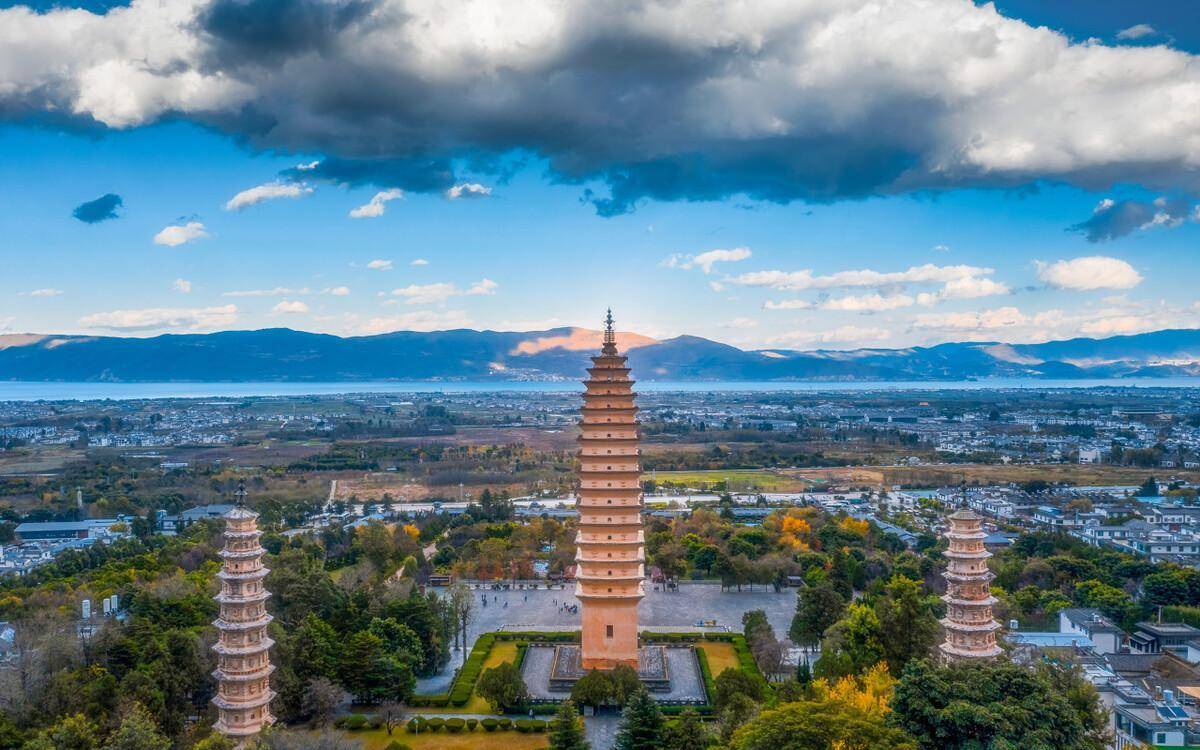 三塔文化旅游区位于洱海畔,游客可以欣赏到洱海美景,远眺云南高原的壮丽景色,是一个拍照打卡的好地方。