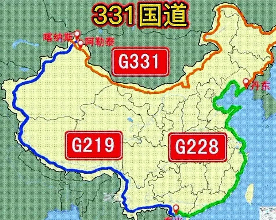 其次,G219是中国最长的国道,也是唯一一条红2万里+国道,北起新疆喀纳斯,南至广西东兴市,途径新疆、西藏、云南、广西四省区,全长10065公里。它与另外两条起始于辽宁丹东的G331、G228国道首尾相连,组成环绕中国大陆架的最美边境公路。