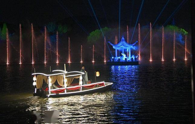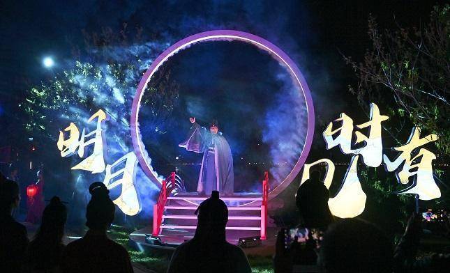 彭城有戏,风华共鉴。当晚的启动仪式后,与会嘉宾以水为媒、以岛为台、以船为席,观赏大型湖岛实景演出《彭城风华》。演出颠覆了传统的大剧场、大场面、大投资,演员人海战术等旅游演艺模式,满载乘客的游船从彭城风华游客中心码头出发,途经8个节点,全程3.3公里的航线。70分钟的行程中,以云龙山水为实景,将声、光、电、水、火等先进的科技手段和演员的真实表演相融合,打造了一幅苏轼在徐州任知州两年的繁华彭城盛景,一段苏轼与徐州的不解情缘,通过苏轼的视角从另一个角度解读徐州,在光影变幻与时空穿越中精彩呈现,进行一场水上行浸式夜游新体验,《彭城风华》将成为徐州旅游的一张新名片。