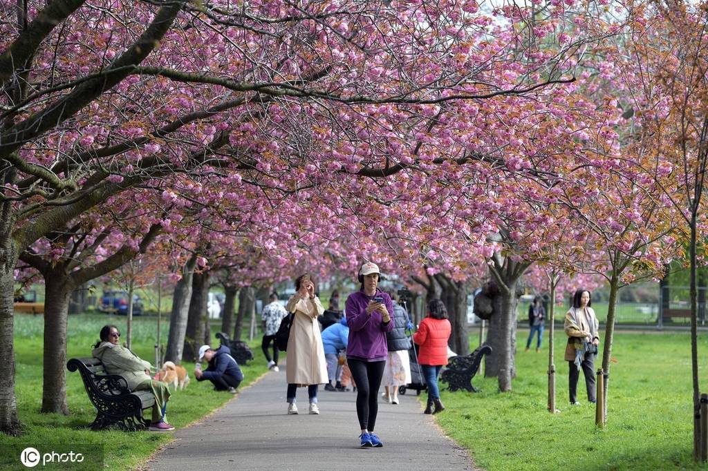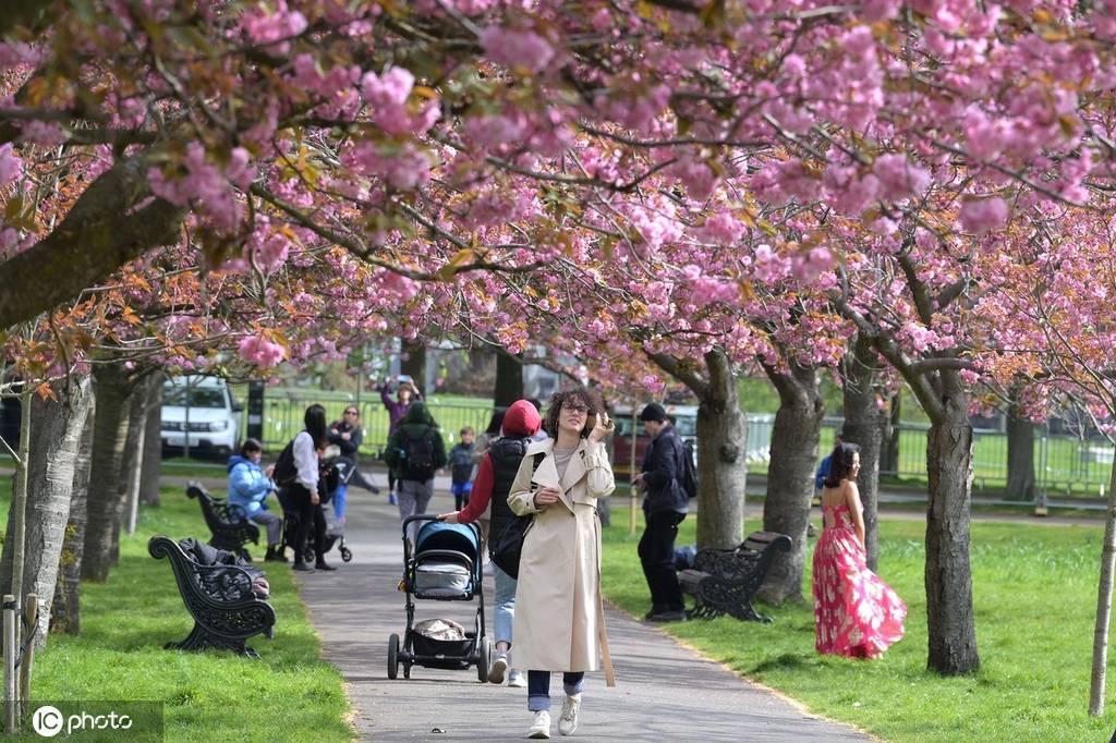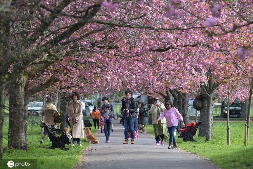 感受春日气息,英国伦敦春意盎然樱花盛放。