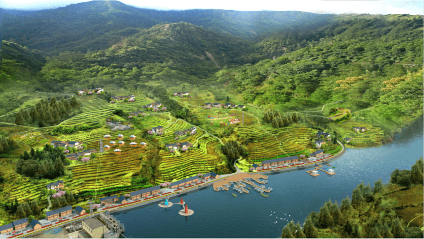 天明镇三化村山花茶产业园→秦诚生态茶园→地母香茶园→董家营镇胥家营村南沙湖→上元观古镇