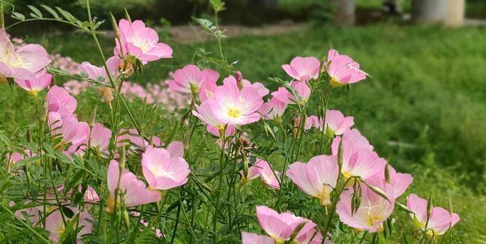 据了解,这种粉色小花,名叫美丽月见草,别名叫待霄草、粉晚樱草和粉花月见草等,是月见草的一个种类;由于美丽月见草株形丰满,花繁叶茂,色彩靓丽,芳香浓郁,深受人们喜爱。