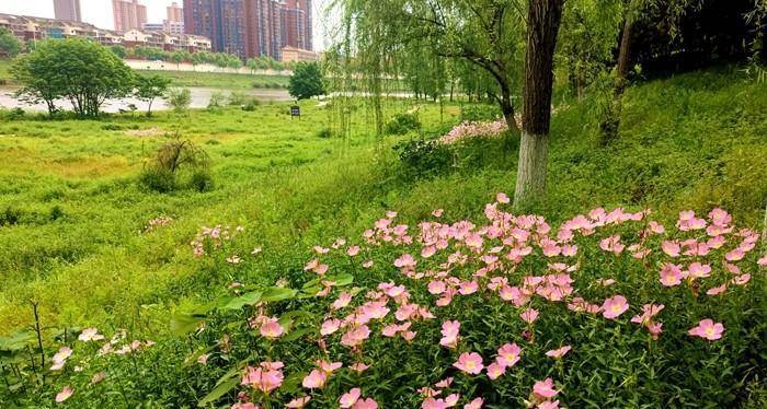 家乡美景风光秀:月见草灿烂绽放,蒸水南风光带美成一片小花海
