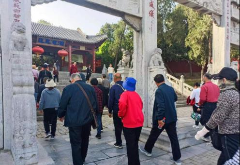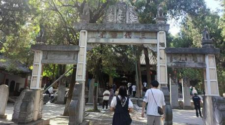这是南阳卧龙岗东大门,人们正从这里鱼贯而入。