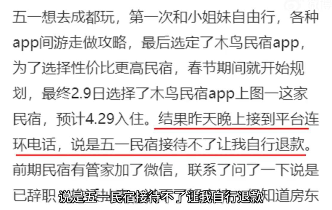 随着五一假期的临近,旅游市场再次迎来了旺季。然而,一些消费者在预订民宿时却遭遇了涨价毁约的问题。据报道,有消费者在预订木鸟民宿时,接连收到平台的电话,告知民宿已经无法接待,要求退款。而其他订房平台则出现了房东私自卖房或者涨价的情况,给消费者造成了极大的困扰和损失。