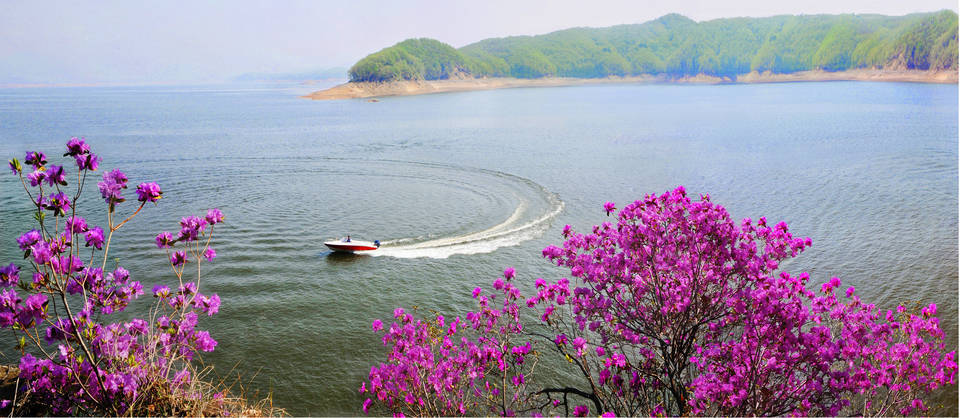 春日的松花湖两岸繁花锦簇 摄影 李志成