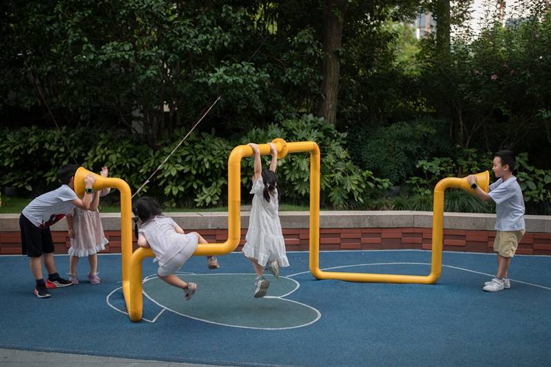 05、2022年8月26日,静安区蝴蝶湾苏州河边新增的各种游乐设施吸引了不少孩子来此玩耍。