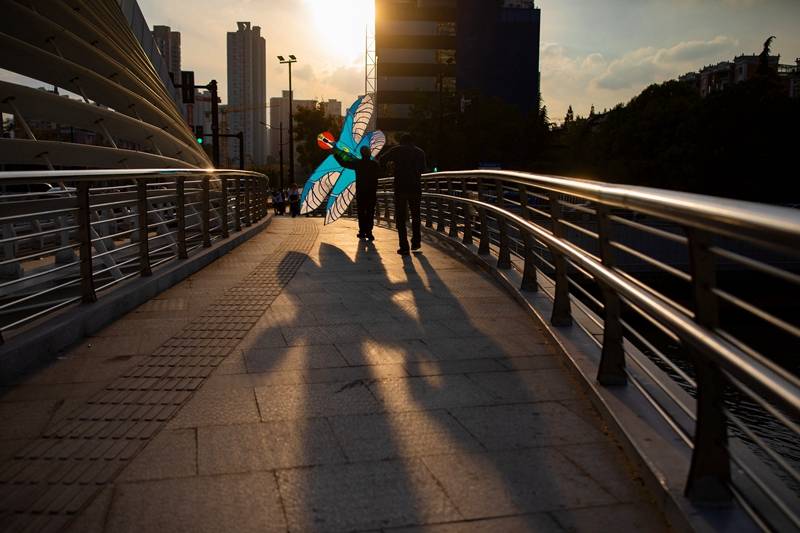 08、2021年11月20日,王师傅拿着自己做的风筝和平时一起玩风筝的朋友一道回家。
