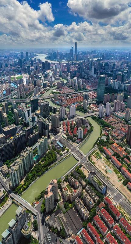 01、2021年7月21日,苏州河一路蜿蜒向东,与黄浦江交汇。