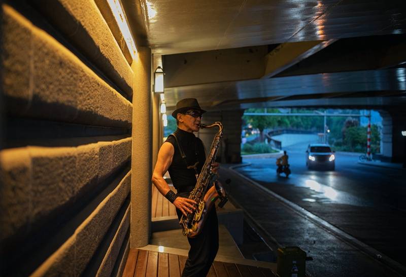 03、2021年5月15日,武宁路桥下,常先生在练习萨克斯。