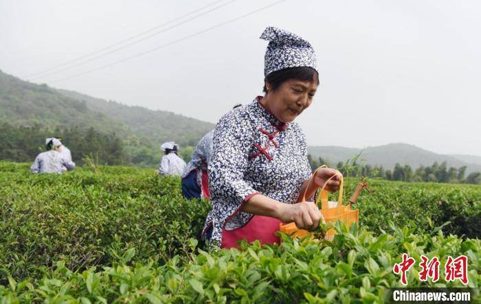 说话间,邱明便和其他游客一起穿梭于满目青翠的茶园中,随着指尖翻飞,一片片新绿快速落入袋中,尽享采茶乐趣。