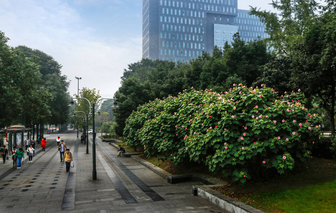 ·天府大道及锦江沿岸的芙蓉花