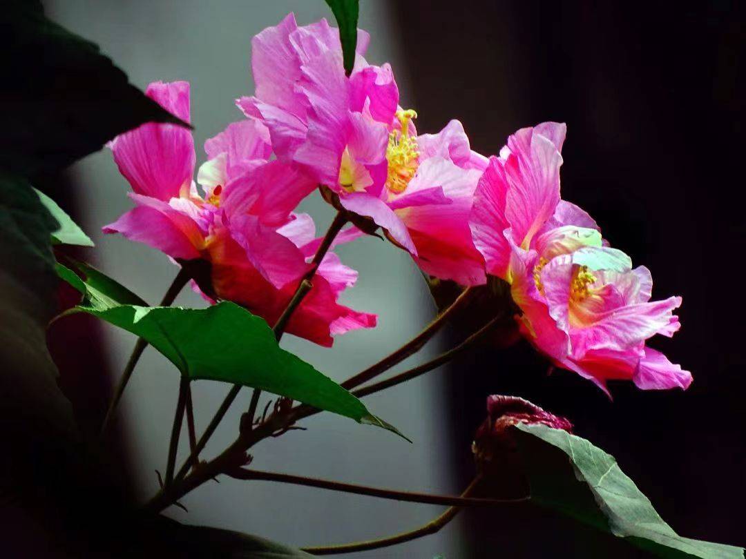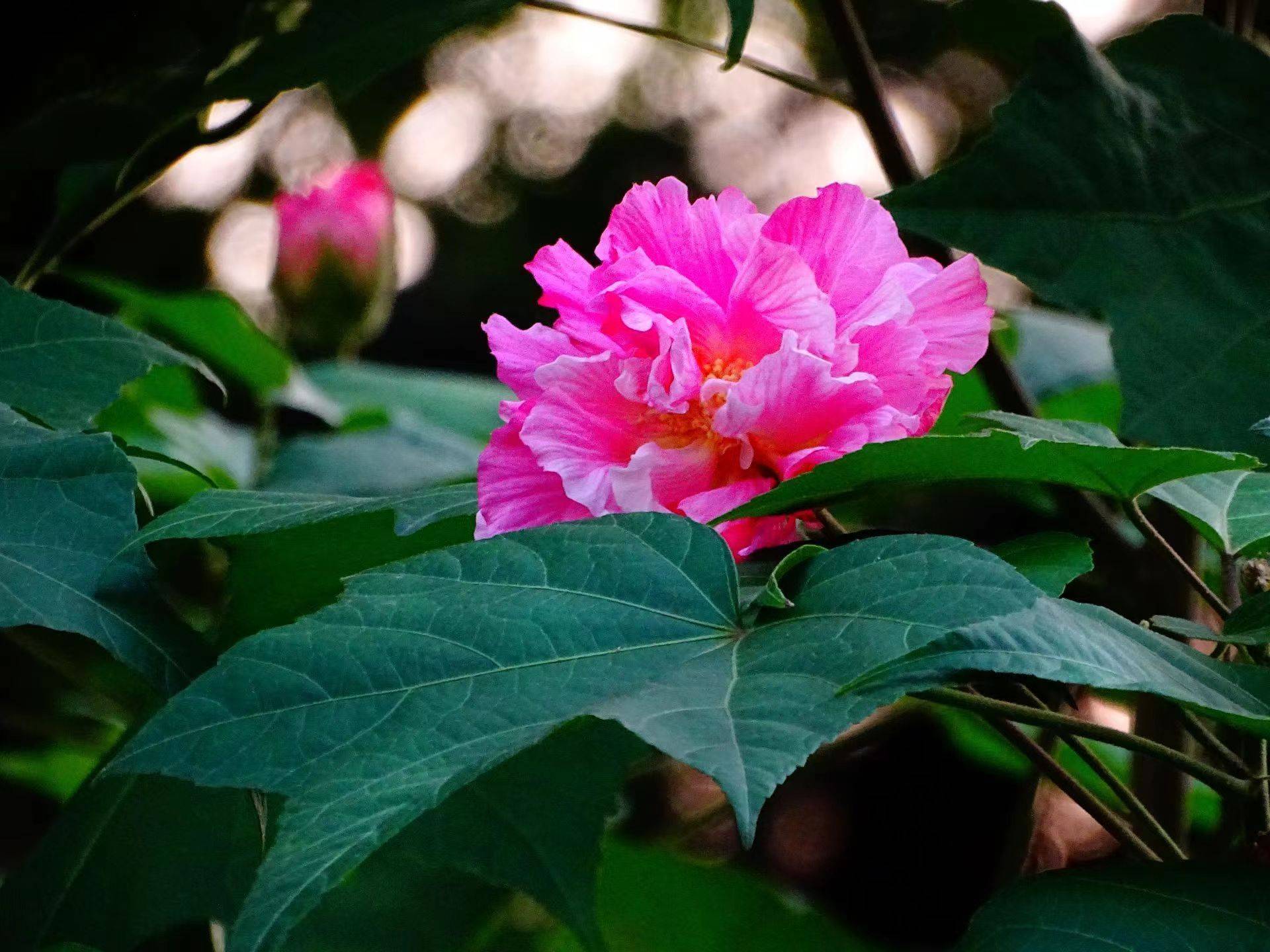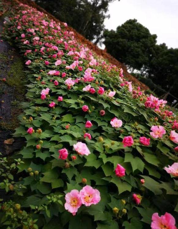 石小庆展示出几张芙蓉的照片,“你看它的花其实很漂亮,花很大,但叶子也很大,而且多,这特别不占优势。”确实,硕大的叶片看上去有些“喧宾夺主”,即使开在路边,也不易察觉。