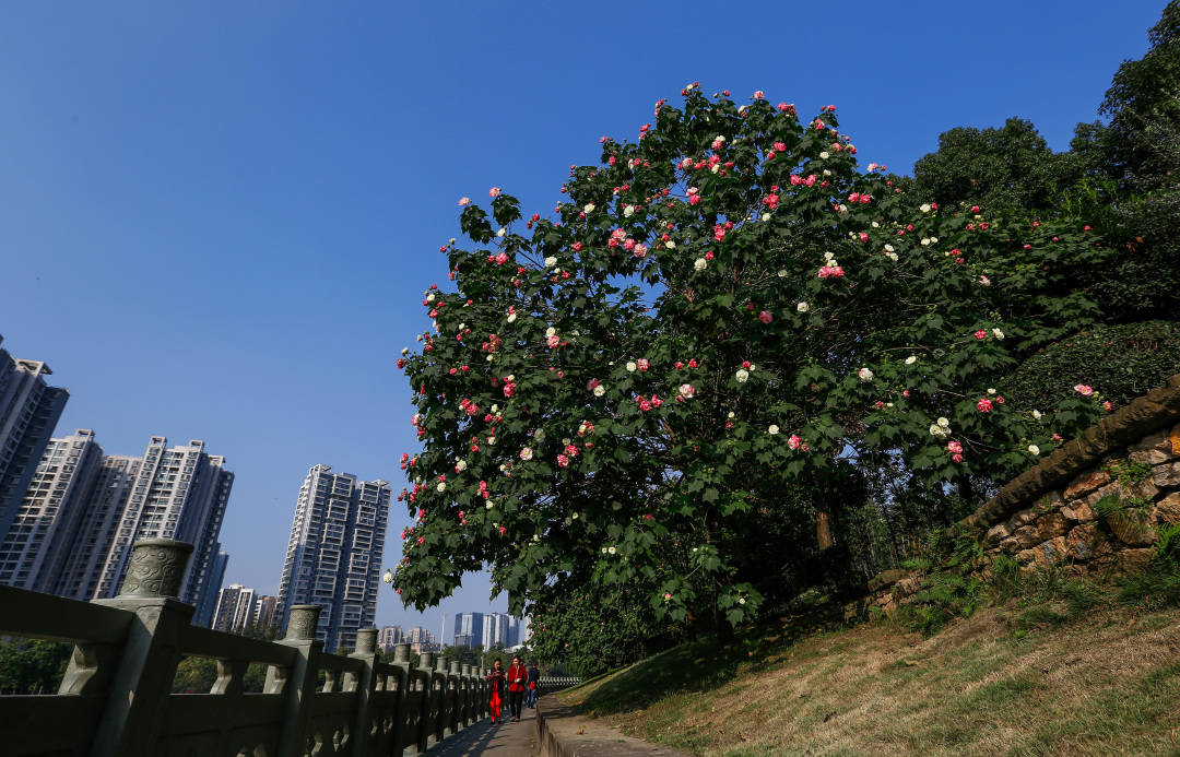 “四十里城花作郭,芙蓉围绕几千株。”这句诗为我们描绘了芙蓉花开锦官城的美景。成都也在2017年提出“5年内要扩大芙蓉栽植面积,提升芙蓉显示度”。但许多人有个疑问,为何芙蓉花不像樱花、黄花风铃木等植物一样引人瞩目,甚至在市区也比较少见?