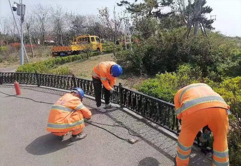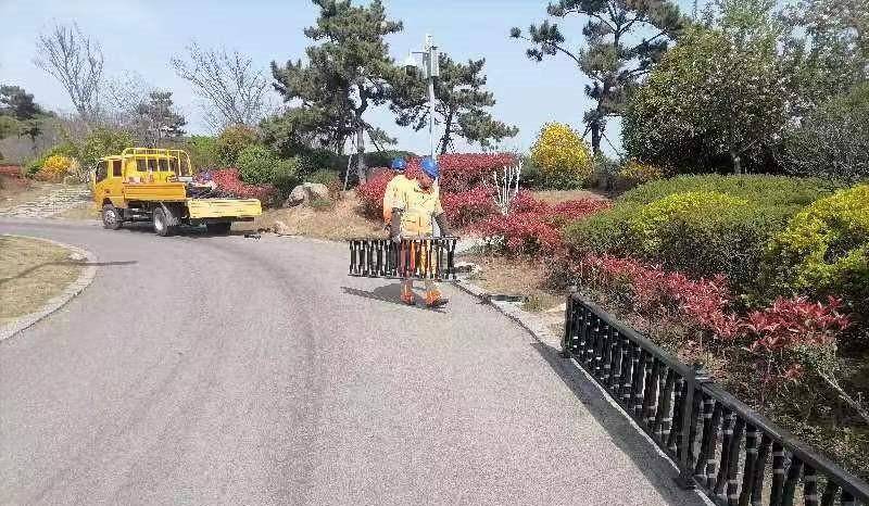 市政管理公司供图:工人在路边加装护栏