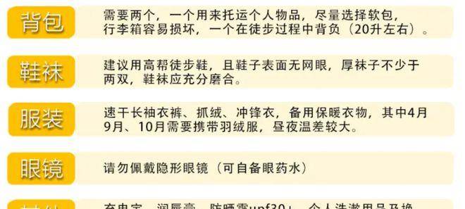 :可触屏手套/防晒套袖/防沙鞋套/营地灯/防晒面巾/充气枕头/行李牌/手机防沙套/全新睡袋等,防潮垫子/登山杖/帐篷可免费使用,徒步穿越沙漠一路畅通。