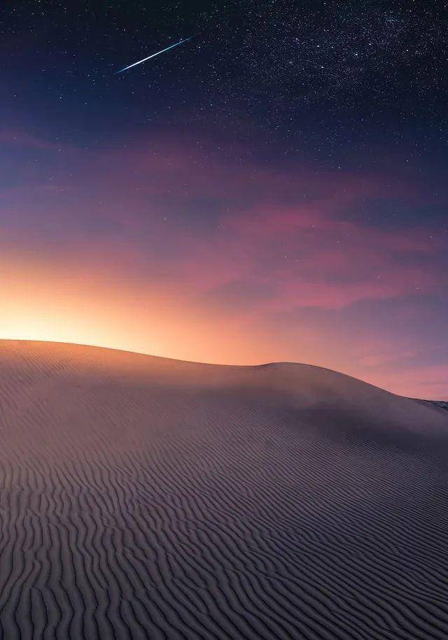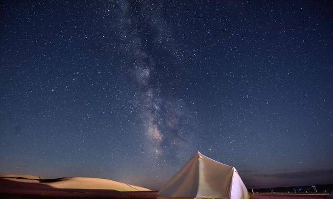 璀璨星空,一直延伸到宇宙尽头。躺在沙漠上一颗一颗数着星星,在梦幻的璀璨星河下做个好梦,迎接一个崭新的明天。